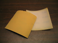 Ok we all know the rule, a topcoat is dry when sanded, a white powder comes off the paper, (in this case I'm using amber shellac so it will be an amber color powder). Now my shellac only has about an hour of dry, my sandpaper is still digging into the shellac and loading up. The shellac is dry, just not dry enough to "dry sand."Solution, I know this sounds crazy, wet sand with soapy water. The soap provides lubrication. In this case, I'm using a foam backed 320 grit wet/dry sandpaper from Mirka. Great for scuffing between topcoats. The foam backing helps keep even "light" pressure that can actually help you from sand-thru. The bonus is the papers wet/dry performance!